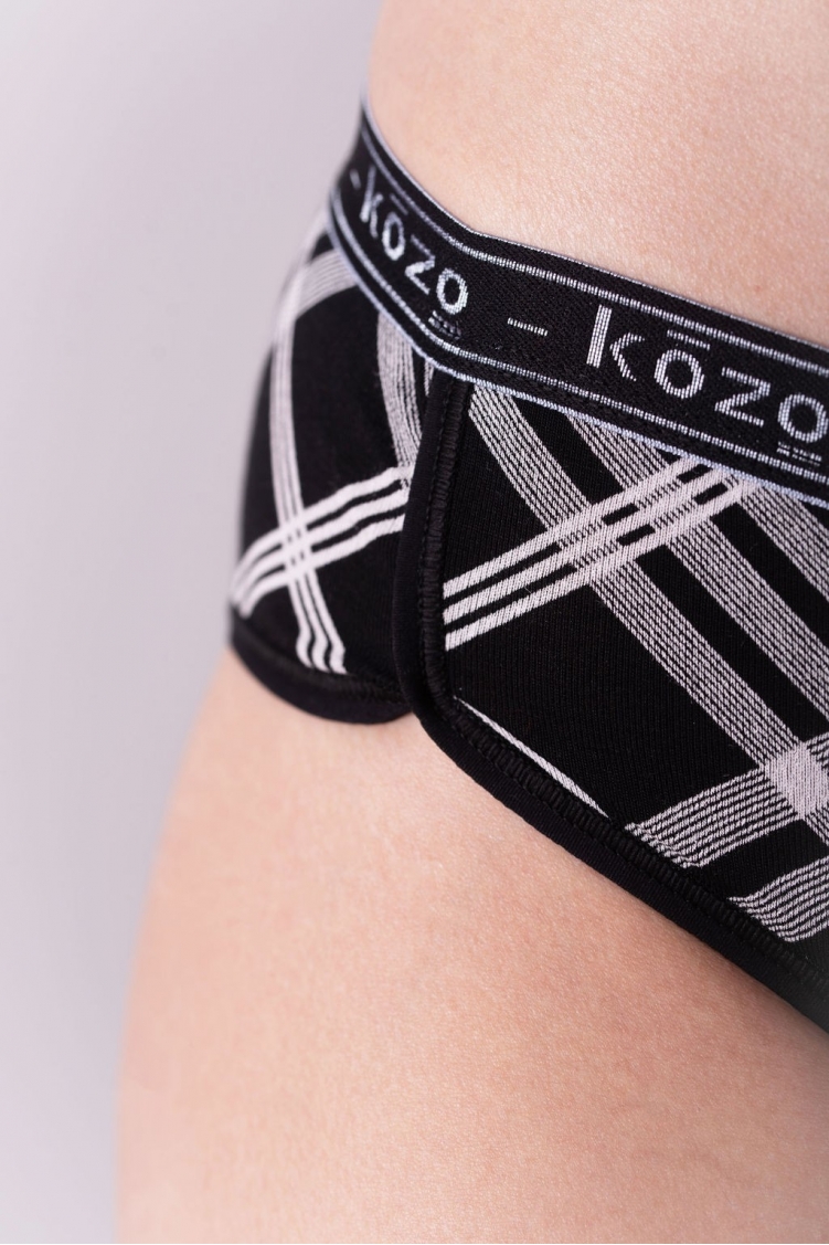 Hipster gaćice kariranog uzorkom s izrazito tankim šavovima stvaraju svilenkast i mekan osjećaj na koži. Lagana logo guma prianja se uz tijelo te daje završni detalj za dobar osjećaj.